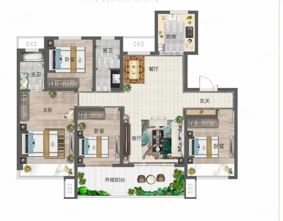 141㎡户型开始玩空间游戏厨房北侧外凸150公分,看似对外立面有所牺牲,实则为餐厅换来完整方正的格局。开发商称其为“功能模块化”,在普通人眼中就如同乐高积木,移动一块便能重新构建空间。
